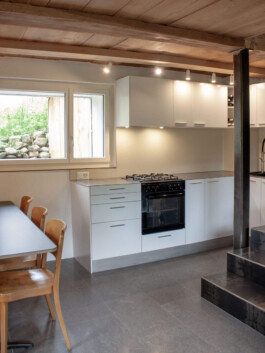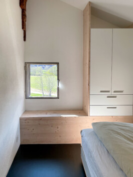 Die Aussenhülle des ursprünglichen Stalles ist zu einem grossen Teil erhalten. Der moderne Innenausbau ist aussergewöhnlich reich an Details und Atmosphäre und kombiniert raffiniert Altes mit Neuem. So verbindet sich der Charme der alpinen, traditionellen Architektur mit den Anforderungen von heutigem Wohnen.